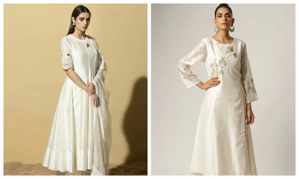 सफेद सिल्क कुर्ती हमेशा ही ट्रेंड में रहती है. गोल्डन किनारी वाला दुपट्टा इस कुर्ती को और खूबसूरत बना देता है. मिनिमल जूलरी के साथ ये लुक बहुत ही क्लासी और रिफ्रेशिंग लगेगा.