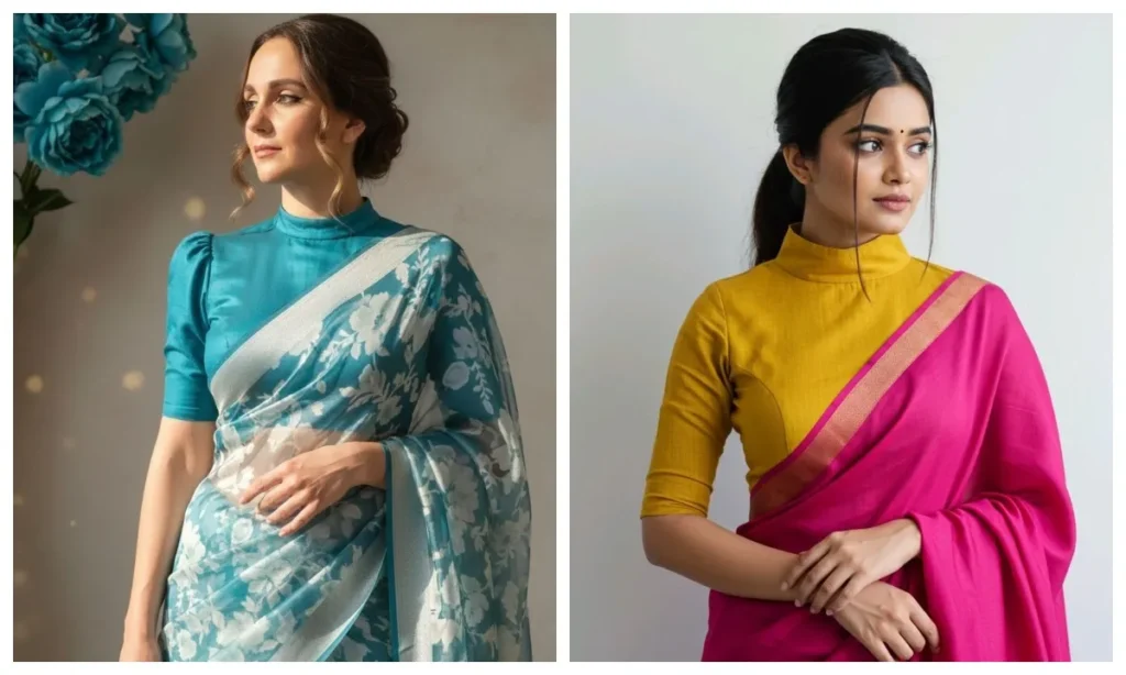 फॉर्मल इवेंट्स या ऑफिस पार्टी के लिए कॉलर वाले ब्लाउज बिल्कुल परफेक्ट रहते हैं. ये ट्रेडिशन और मॉर्डन लुक का एक बेहतरीन कॉम्बिनेशन है. फॉर्मल लुक के लिए आप इन्हें ट्राई कर सकती हैं.