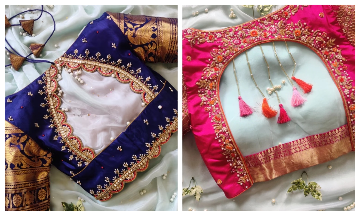 अगर आप इस बार अपने ब्लाउज की बैक पर डोरी को अवॉइड करना चाहती हैं तो हैवी एंब्रायडरी वाले ब्लाउज डिजाइन का चुनाव करें. ऐसे ब्लाउज डिजाइन्स साड़ी में आपको स्टाइलिश और एलिगेंट लुक देने का काम करते हैं.