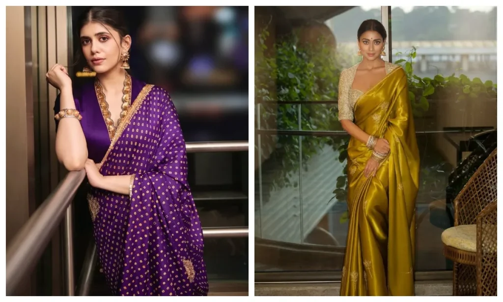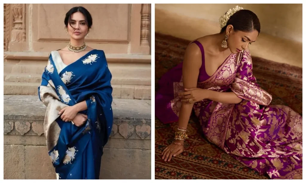 - बनारसी सिल्क: अगर शाम की पार्टी या ग्रैंड रिसेप्शन है, तो बनारसी साड़ी पहन सकती हैं. इस तरह की साड़ियां आपको महारानी जैसा लुक देंगी.