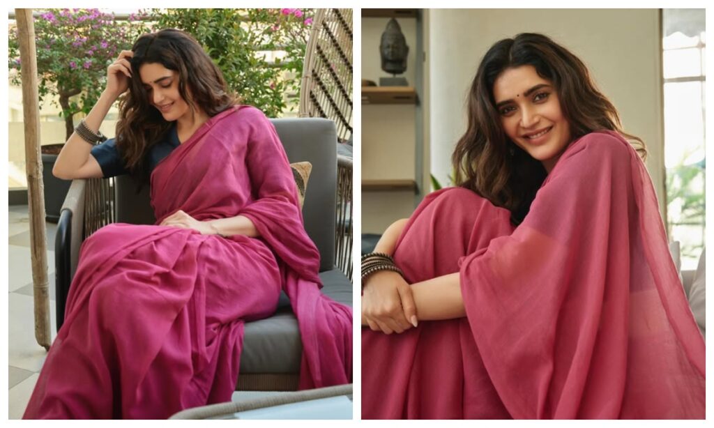 करिश्मा तन्ना गुलाबी रंग की कॉटन साड़ी में तमन्ना भाटिया का ये लुक काफी शानदार है. उन्होंने ऑक्सीडाइज बैंगल के साथ इस लुक को और क्लासी बनाया.