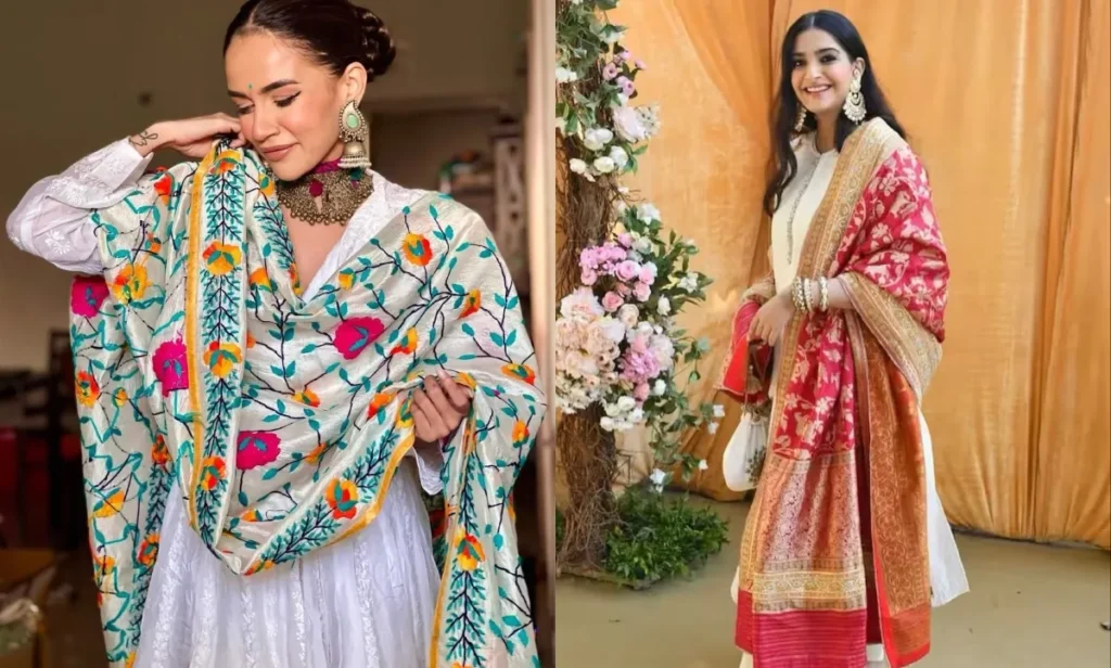 इस सीजन में कुछ खास तरह के फुलकारी दुपट्टे ट्रेंड में हैं जो आपको भी जरूर पसंद आएंगे. अगर आपको बहुत ज्यादा तड़क-भड़क पसंद नहीं है, तो व्हाइट फुलकारी दुपट्टा आपके लिए बेस्ट है. सफेद रंग पर की गई बारीक कढ़ाई बहुत ही क्लासी लगती है. इसे आप किसी भी कलर के सूट के साथ पहनकर रॉयल लुक पा सकती हैं.