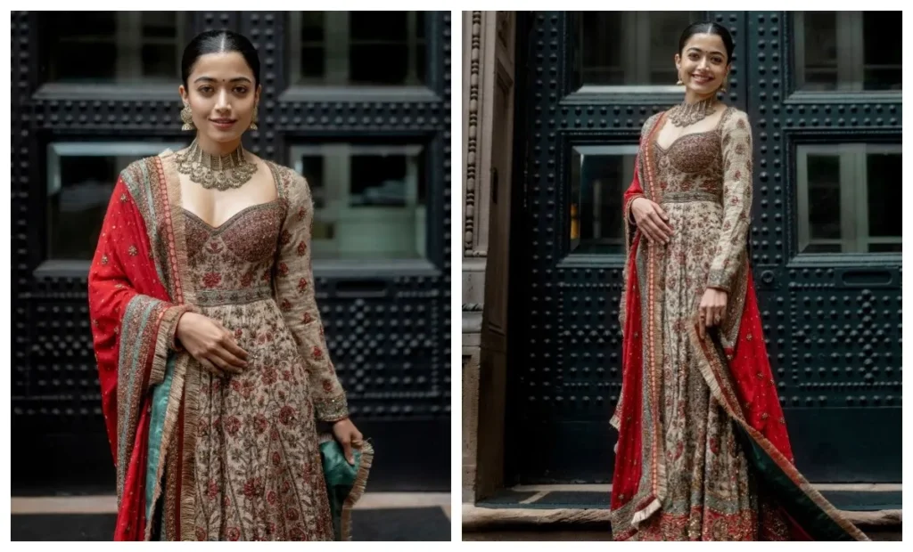 रश्मिका मंदाना ने इस लुक में भारतीय परंपरा को बहुत ही खूबसूरती से पेश किया. उन्होंने एक ऐसी ड्रेस चुनी जिस पर बहुत ही बारीक और सुंदर कढ़ाई की गई थी. इसके साथ वाइब्रेंट कलर रंग का दुपट्टा और ट्रेडिशनल गहनों ने उनके लुक में चार चांद लगा दिए. रश्मिका का ये अंदाज़ बताता है कि वो अपनी जड़ों से कितनी जुड़ी हुई हैं.
