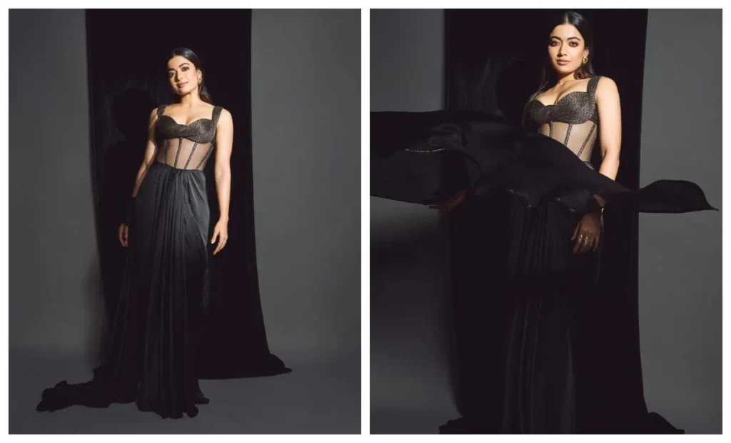 एथनिक ही नहीं, वेस्टर्न ड्रेसेस में भी रश्मिका मंदाना का कोई मुकाबला नहीं है. एक इवेंट के लिए उन्होंने ब्लैक कलर का शानदार गाउन पहना था. इस गाउन का कॉर्सेट स्टाइल और नेट का काम इसे बहुत ही स्टाइलिश बना रहा था. इस लुक को उन्होंने बहुत ही मिनिमल एक्सेसरीज के साथ कैरी किया, जिससे उनकी नेचुरल खूबसूरती निखर कर आई.