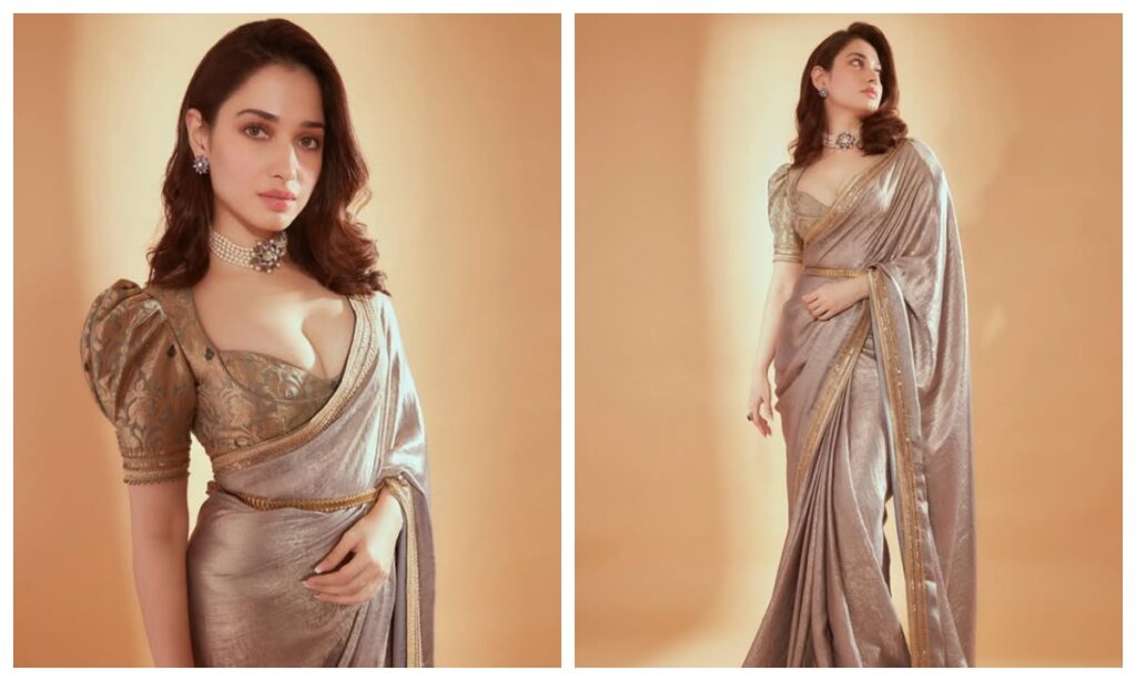 तमन्ना भाटिया की तरह आपका भी कर्वी फिगर है तो इस तरह की सिल्क साड़ी पहने. उन्होंने अपनी मैटेलिक साड़ी को मैचिंग पफ स्लीव ब्लाउज के साथ स्टाइल किया.