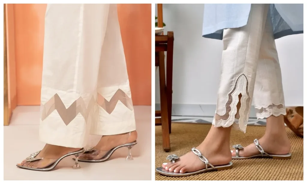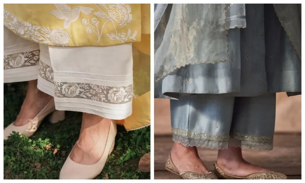 पाकिस्तानी सिगरेट पैंट्स की खासियत इनकी फिटिंग और नीचे की तरफ किया गया बारीक काम है. ये एंकल लेंथ होती हैं और पैरों को एक बहुत ही सुंदर शेप देती हैं. अगर आपकी कुर्ती हैवी वर्क वाली है, तो सिगरेट पैंट्स आपके लुक को और भी ज्यादा निखार देती हैं.
