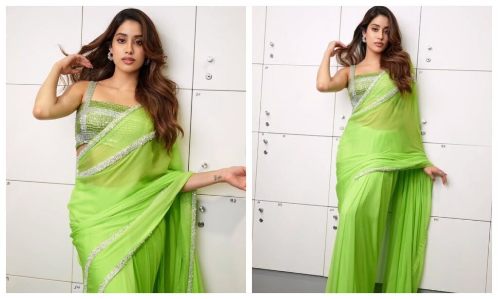 जान्हवी कपूर का ये साड़ी लुक यंग गर्ल्स के बीच काफी पॉपुलर हो चुका है. इस तरह की हल्की फुल्की शिफॉन साड़ी आपको गर्मियों में भी स्टाइलिश लुक देंगी.