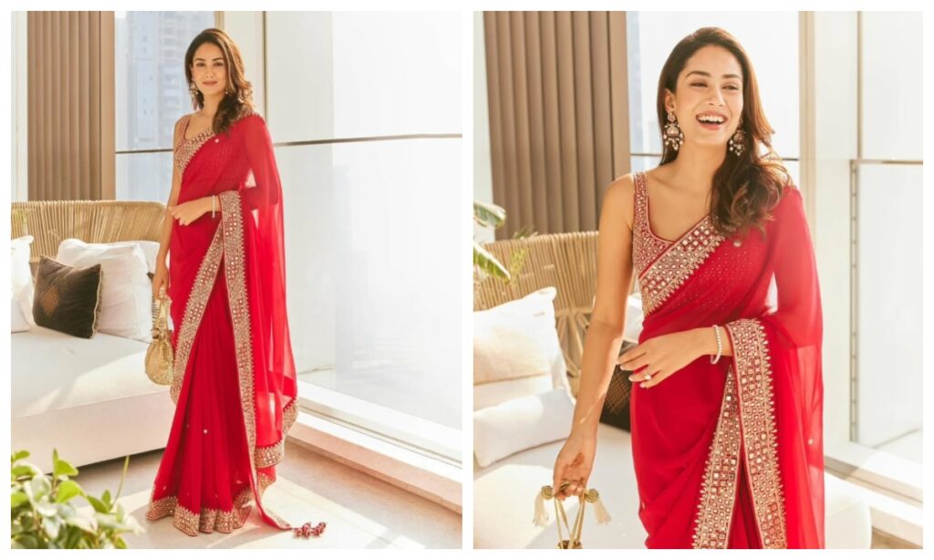 मीरा कपूर ने रेड कलर की साड़ी को बॉर्डर से मैच करते हुए स्लीवलेस ब्लाउज के साथ पहना था. आप भी इस तरह की साड़ी पहनकर उनके जैसी खूबसूरत लगेंगी.