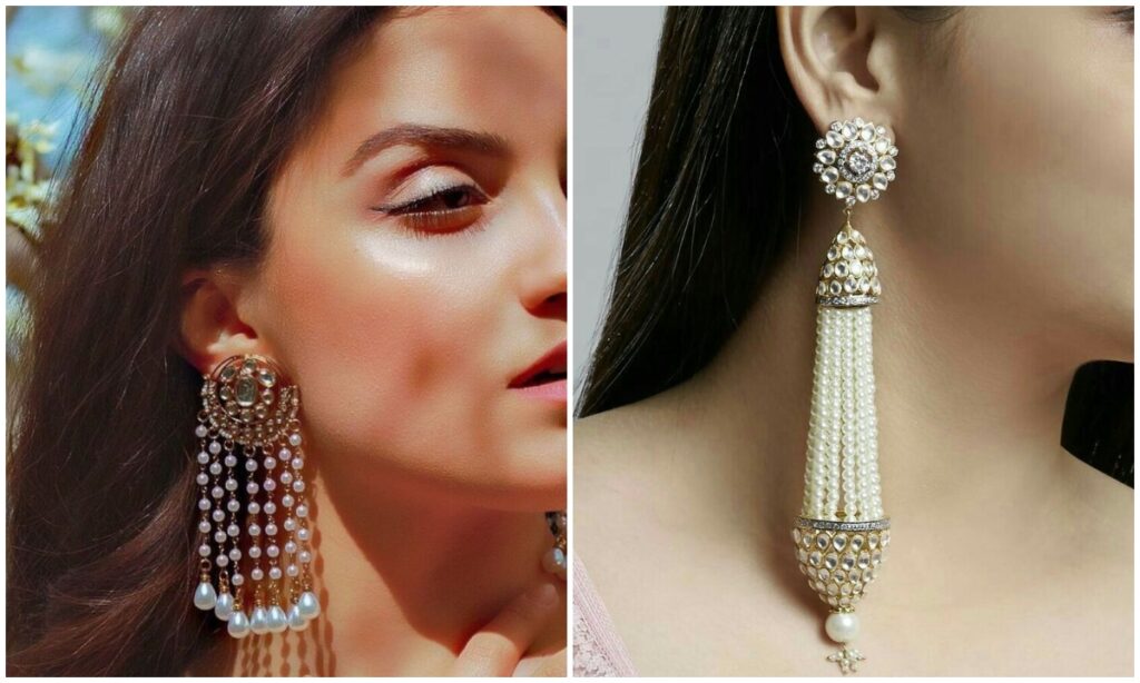 नाज़ुक मोतियों वाले ईयररिंग्स चिकनकारी या लाइट एम्ब्रॉयडरी वाले सूटों के साथ बहुत ही ज्यादा खूबसूरत लगते हैं. ये लुक डे फंक्शन के लिए एकदम परफेक्ट है. आप भी अगली बार जरूर ट्राई करें.