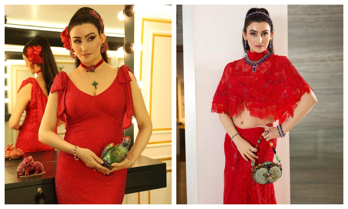 सेक्विन वर्क वाले इस ब्लड रेड मर्मेड गाउन में शालिनी बेहद गॉर्जियस दिख रही हैं. इस बॉडीकोन हाफ स्लीव्स ड्रेस के साथ उन्होंने मैचिंग ज्वेलरी, पैरट क्लच, सटल मेकअप और हाई पोनीटेल को पेयर किया. क्रिसमस पार्टी के लिए अगर आप स्टाइलिश ड्रेस की तलाश में हैं तो शालिनी के इस आउटफिट से आइडिया लें.