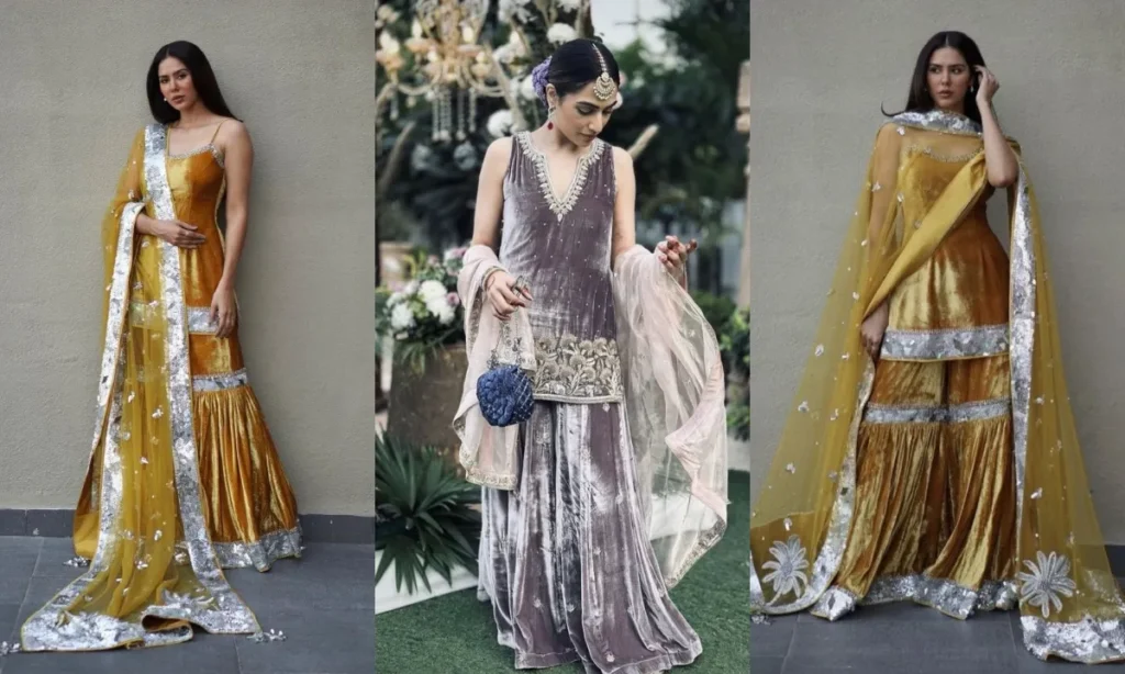 ईद की दावत के लिए कुछ हैवी और चमक-धमक वाला ढूंढ रही हैं? तो गोटा पट्टी या जरदोजी वर्क वाला शरारा सेट आपको एक महारानी जैसा लुक देगा. मैरून, बॉटल ग्रीन या नेवी ब्लू कलर्स में ये शरारा सूट डिजाइन काफी अच्छे लगते हैं. इसके साथ एक हैवी दुपट्टा आपके लुक में चार चांद लगा देगा.