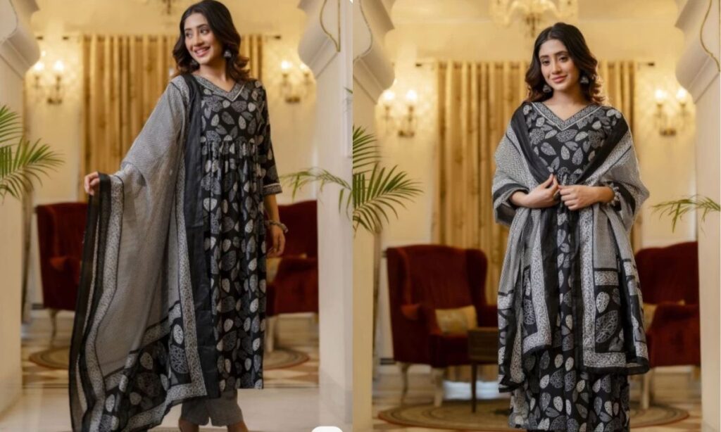 व्हाइट और ब्लैक कलर के प्रिटेंड सूट हर ओकेजन के लिए सही है. इस तरह के सूट को आप ऑफिस में भी कैरी कर सकती हैं. कॉटन का ये सूट बेहद एलिगेंट और क्लासी लग रहा है.