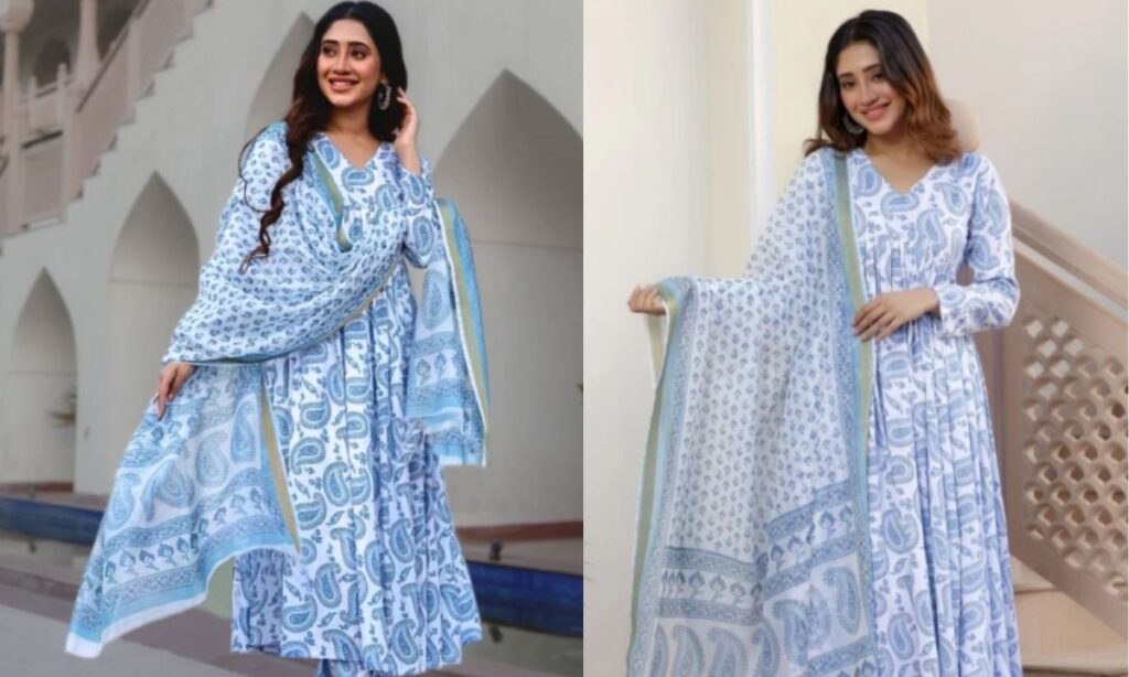व्हाइट और ब्लू कलर के इस अनारकली सूट में शिवांगी जोशी कमाल की लग रही. इस कलर के सूट गर्मियों के लिए एक अच्छा विकल्प होते हैं. अपनी प्यारी सी मुस्कान के साथ उन्होंने अपने लुक को पूरा किया है.