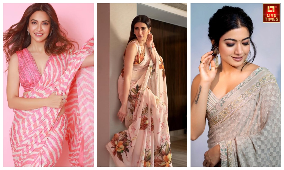 करिश्मा तन्ना का ये साड़ी लुक भी आपको जरूर पसंद आएगा. यहां उन्होंने ब्लश पिंक कलर की सीक्वेंस साड़ी को बड़ी खूबसूरती से कैरी किया. आप भी इस तरह के पेस्टल कलर पहनेंगी तो और हसीन लगेंगी.