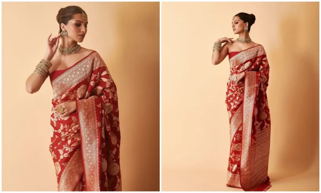 ट्रेडिशनल लुक में मॉडर्न ट्विस्ट के लिए तारा सुतारिया ने रेड बनारसी सिल्क साड़ी के साथ बिना स्ट्रैप वाला सिंपल रेड ट्यूब ब्लाउज़ पहना. उनका ये साड़ी लुक एकदम रॉयल और एलिगेंट था. इस रह का साड़ी लुक उन लड़कियों के लिए है जो ट्रेडिशन और ग्लैमर का बैलेंस चाहती हैं.