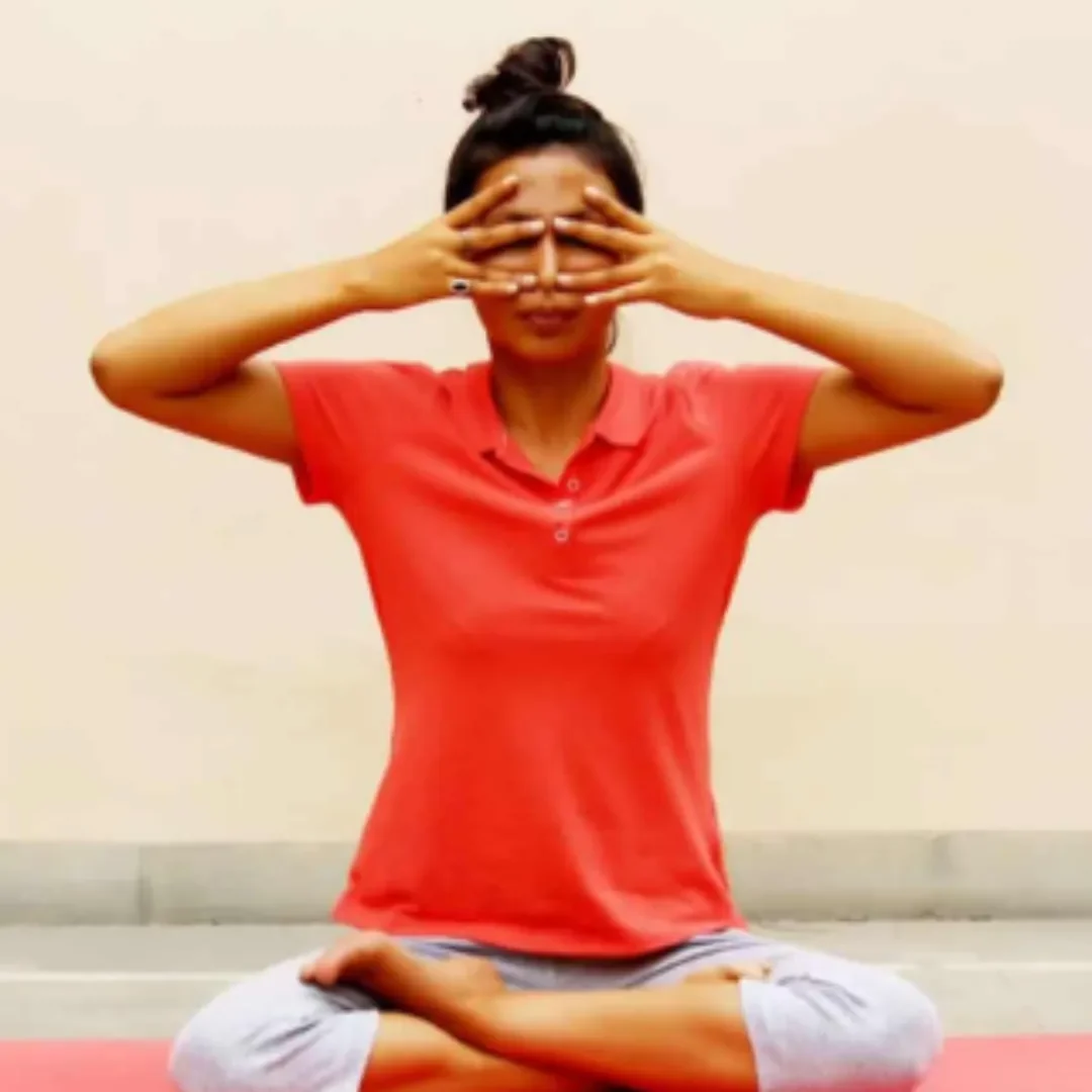 - अब अंगूठों से दोनों कान बंद करे, शेष उगोलियां आंखों और चेहरे पर लगाएं.