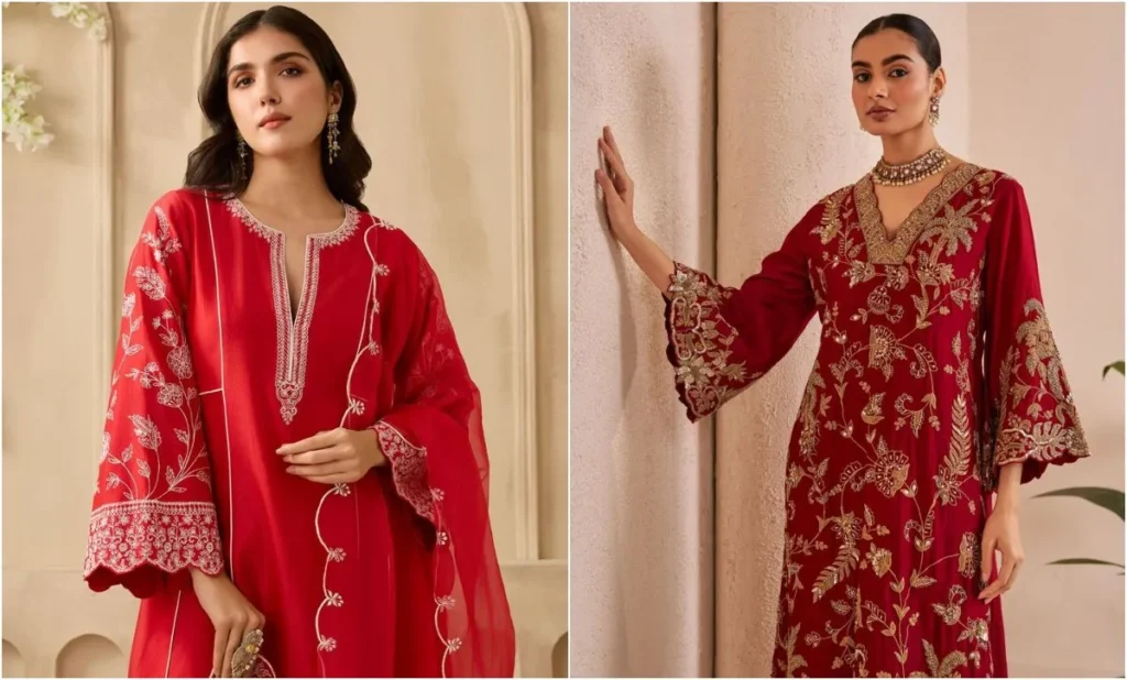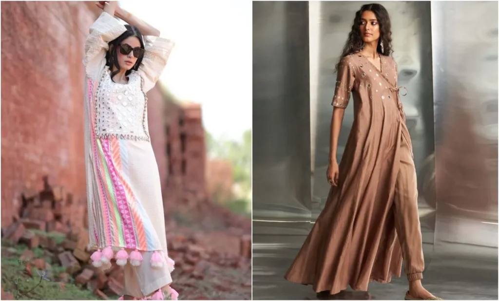 अगर आप त्योहार के दिन कुछ ग्लैमरस और मॉर्डन टच वाला आउटफिट पहनना चाहती हैं, तो फिर मिरर वर्क और थ्रेड कढ़ाई वाला कुर्ता सेट आपके लिए एकदम परफेक्ट रहेगा.