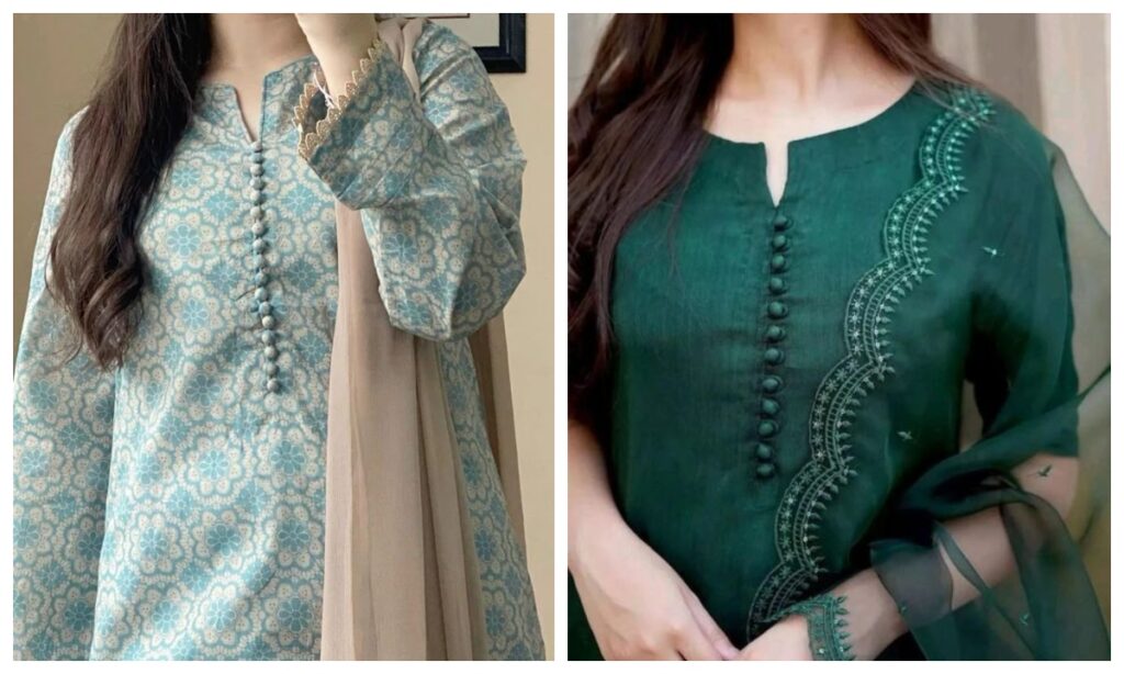 कुर्ते के फ्रंट नेक पर आप सिंपल बटन लगवाकर सूट लुक को और खूबसूरत बना सकती हैं. कॉटन से लेकर जॉर्जट सूट में भी इस तरह के बटन काफी अच्छे लगते हैं.