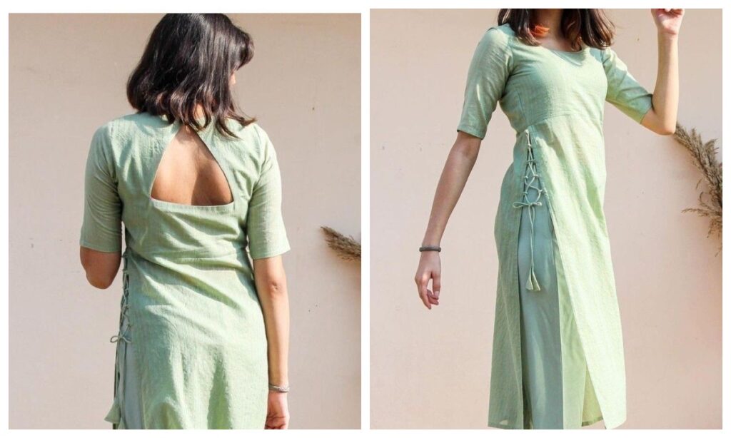 आप अपनी सिंपल कॉटन कुर्तियों को स्टाइलिश बनाने के लिए नेक डिजाइन पर फोकस कर सकती हैं. बैक पर इस तरह का कट और फ्रंट नेक को राउंड शेप में डिजाइन करवा सकती हैं.