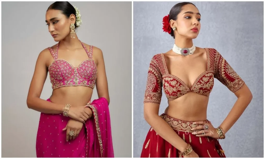 अगर आप अपने लुक को और भी ग्लैमरस बनाना चाहती हैं, तो हैवी वर्क वाला ब्लाउज़ आपके लिए सबसे बेहतरीन ऑप्शन है. ये ब्लाउज़ खासकर शादी या किसी बड़े फेस्टिवल के लिए परफेक्ट रहते हैं. ये ब्लाउज आपके साड़ी और लहंगा लुक को और भी रॉयल बना देते हैं.