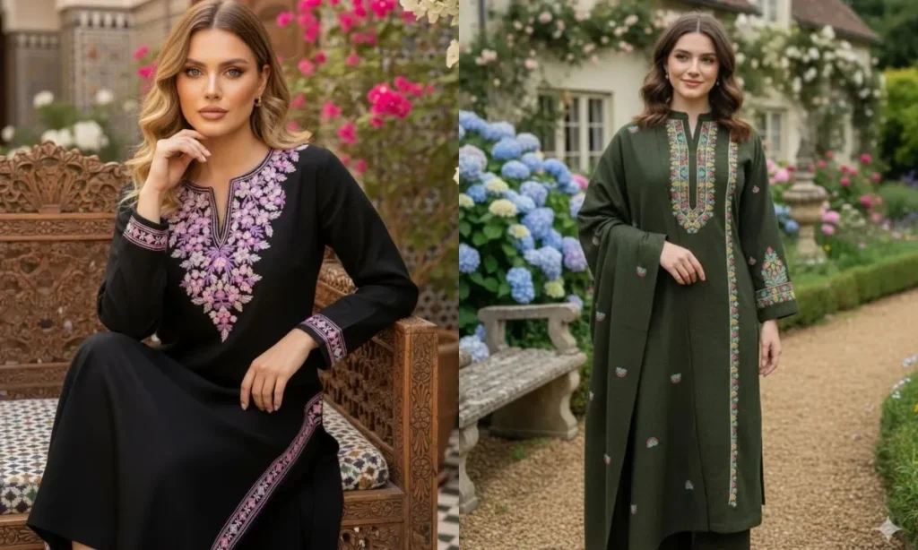 अगर आपको ट्रेडिशनल कढ़ाई पसंद है, तो कश्मीरी आरी वर्क वाला वुलन कुर्ता सेट आपकी पहली पसंद होनी चाहिए. डार्क कलर्स पर रंग-बिरंगे धागों का काम बहुत ही खूबसूरत लगता है. ये न सिर्फ आपको गरम रखता है बल्कि स्टाइलिश भी दिखाता है.