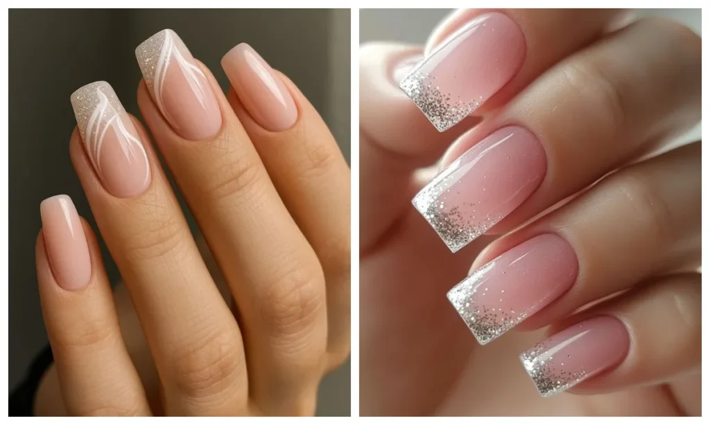 क्लासिक फ्रेंच नेल्स को ग्लिटरी ट्विस्ट देने के लिए आप सिल्वर शिमरी नेल आर्ट भी करवा सकती हैं. इससे आपको स्मार्ट और क्लीन लुक मिलेगा. वेस्टर्न से लेकर इंडो-वेस्टर्न ड्रेसेस पर भी ये डिजाइन परफेक्ट लगेगा.