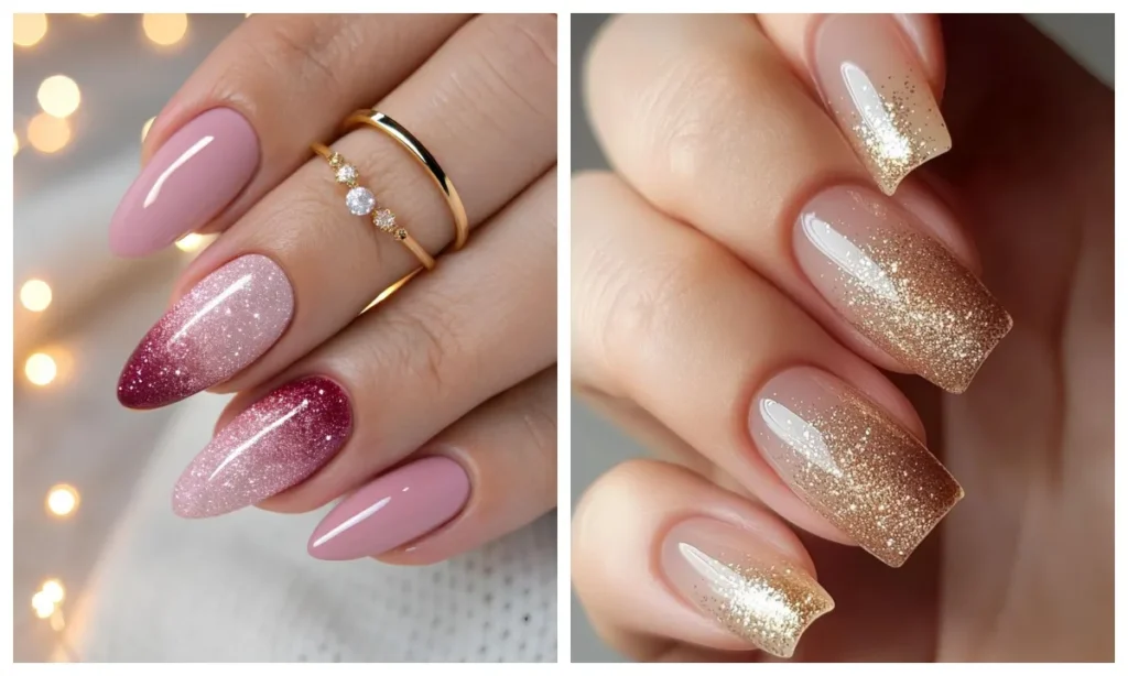 अगर आपको क्यूट और गर्ली स्टाइल पसंद है, तो रोज़ पिंक ग्लिटरी नेल्स परफेक्ट रहेंगे. डेट नाइट हो या ब्रंच आउटिंग, ये डिज़ाइन आपको बहुत ही सॉफ्ट और स्टाइलिश फील देगा.
