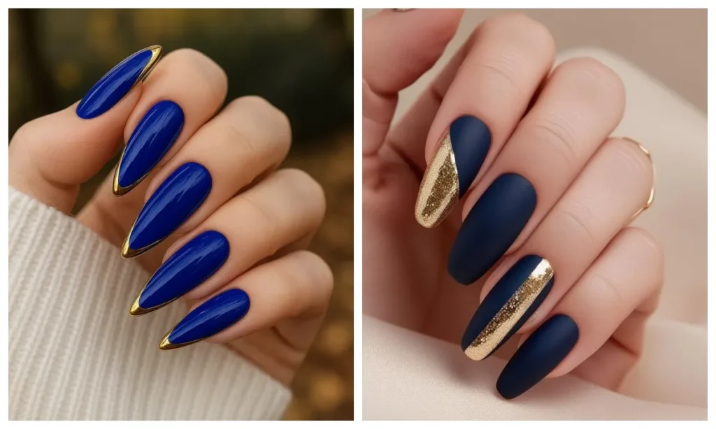 डार्क ब्लू नेल पेंट पर कॉन्ट्रास्ट या मैचिंग ब्लू ग्लिटर काफी ग्लैमरस दिखता है. ये लुक सर्दियों के फंक्शन्स के लिए सबसे बढ़िया ऑप्शन है. आप भी वेडिंग सीजन के लिए इस तरह का डिजाइन ट्राई करें.