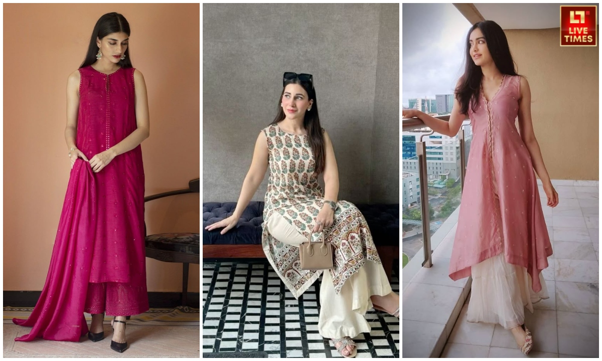 फ्लोरल, ब्लॉक या ट्राइबल प्रिंट वाले स्लीवलेस कुर्ता सेट गर्मियों के लिए आइडियल हैं. ये लाइटवेट कुर्तियां आपके लुक में फ्रेशनेस लाती हैं. आप इन्हें कॉटन या लिनन फैब्रिक में लेंगी, तो आपको कंफर्ट और स्टाइल दोनों मिलेगा.