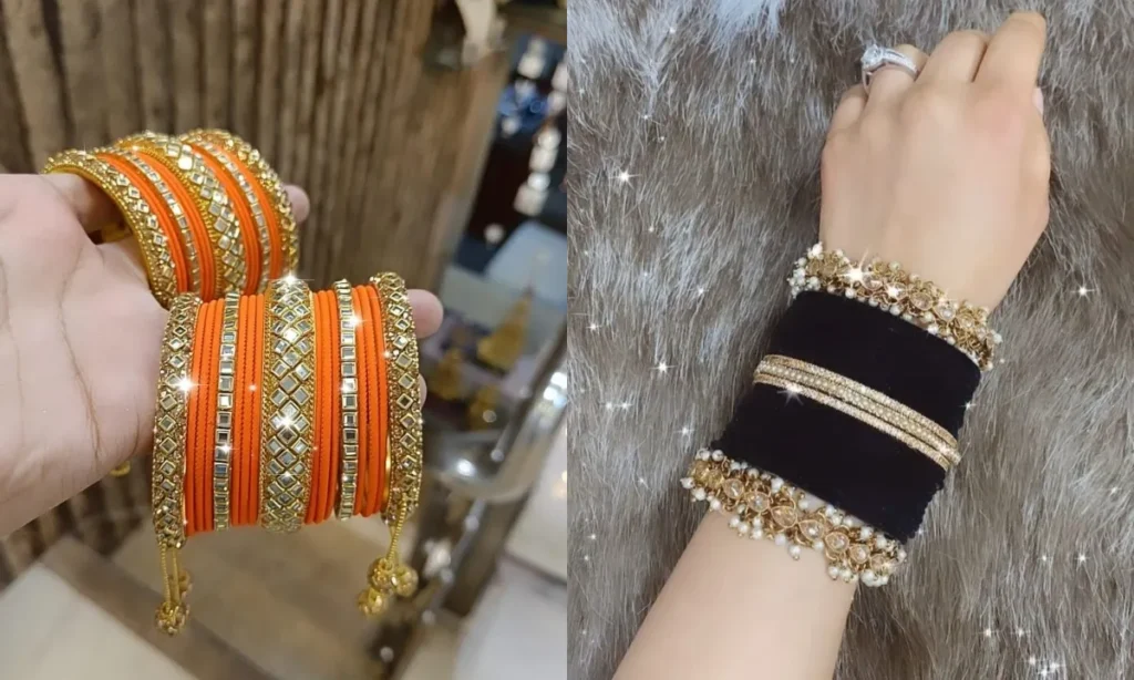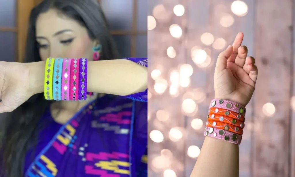फेस्टिवल या मेहंदी फंक्शन के लिए मिरर वर्क वाले वेलवेट कड़े और चूड़ियां काफी ज्यादा पॉपुलर हैं. शीशे की चमक और वेलवेट का सटल लुक काफी अच्छा लगता है. आप हैवी फंक्शन के लिए इन्हें ट्राई कर सकती हैं.