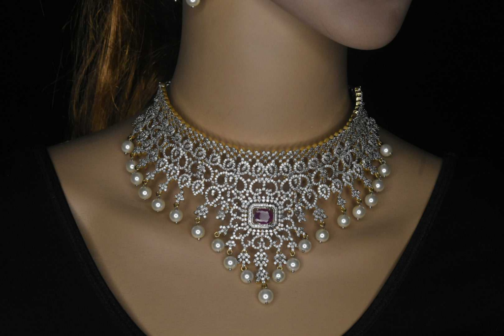 इस दौर में लड़कियां को डायमंड नेकलेस बेहद पसंद आते हैं. अगर आप भी शादियों के सीजन में हैवी नेकलेस कैरी करना चाहती हैं तो इस डिजाइन के नेकलेस परफेक्ट रहेगा. इसके साथ आप डायमंड इयररिंग भी कैरी कर सकती हैं.
