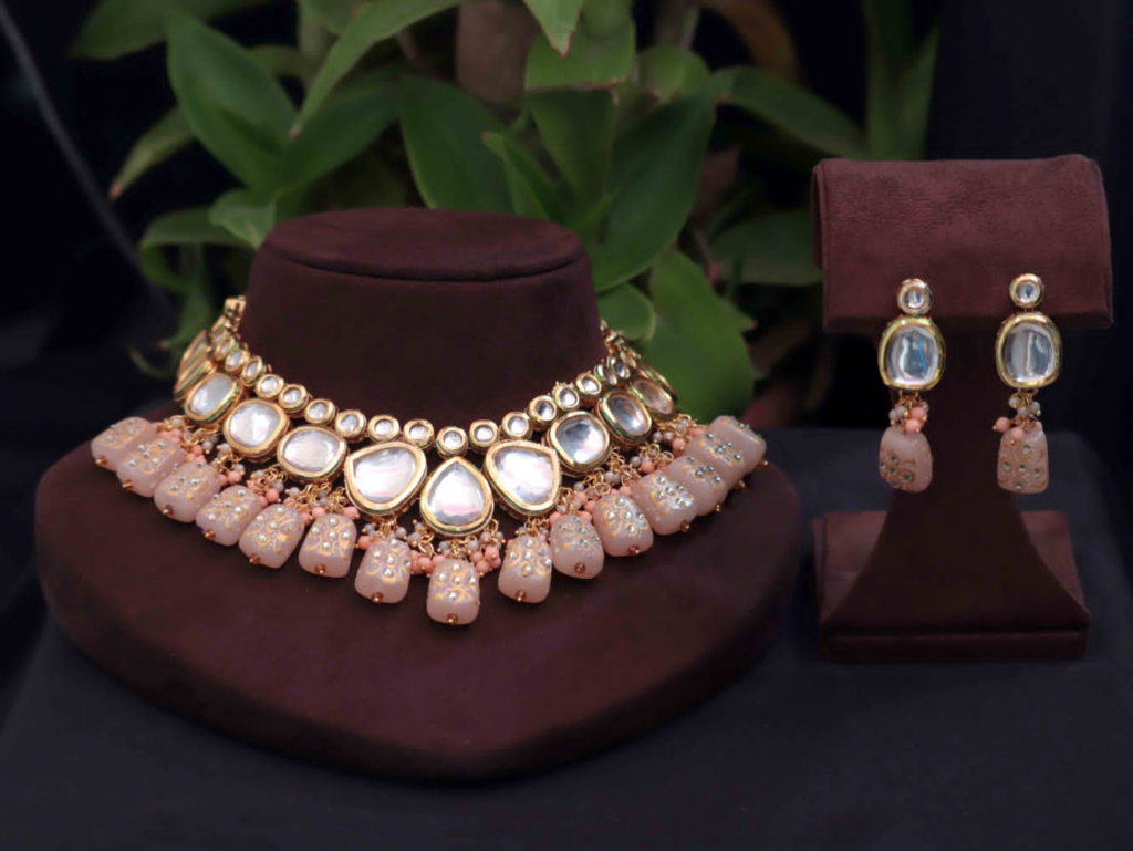 कुंदन स्टाइल नेकलेस आजकल काफी ट्रेंड में है. आप भी इस डिजाइन को पेयर कर सकती हैं. इस तरह के नेकलेस में पर्ल और स्टोन का वर्क होता है. इसे आप सूट, साड़ी और लहंगा के साथ स्टाइल कर सकती हैं. कुंदन स्टाइल नेकलेस अपने नेक डिजाइन के अनुसार साइज का चयन करें.