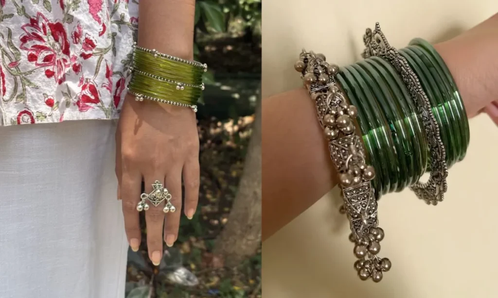 इस तरह के सिल्वर घुंघरू वाले कड़े बहुत ही एस्थेटिक और स्टाइलिश लगते हैं. आप किसी भी कलर की चूड़ियों को घुंघरू वाले कड़े के साथ सेट बनाकर पहन सकती हैं. अगर आपको सिल्वर ज्वैलरी पसंद है तो आपको ऐसा सेट जरूर पहनना चाहिए. कुर्ती हो या सूट, इन चूड़ियों का सेट सभी पर बहुत संदर लगेगा.