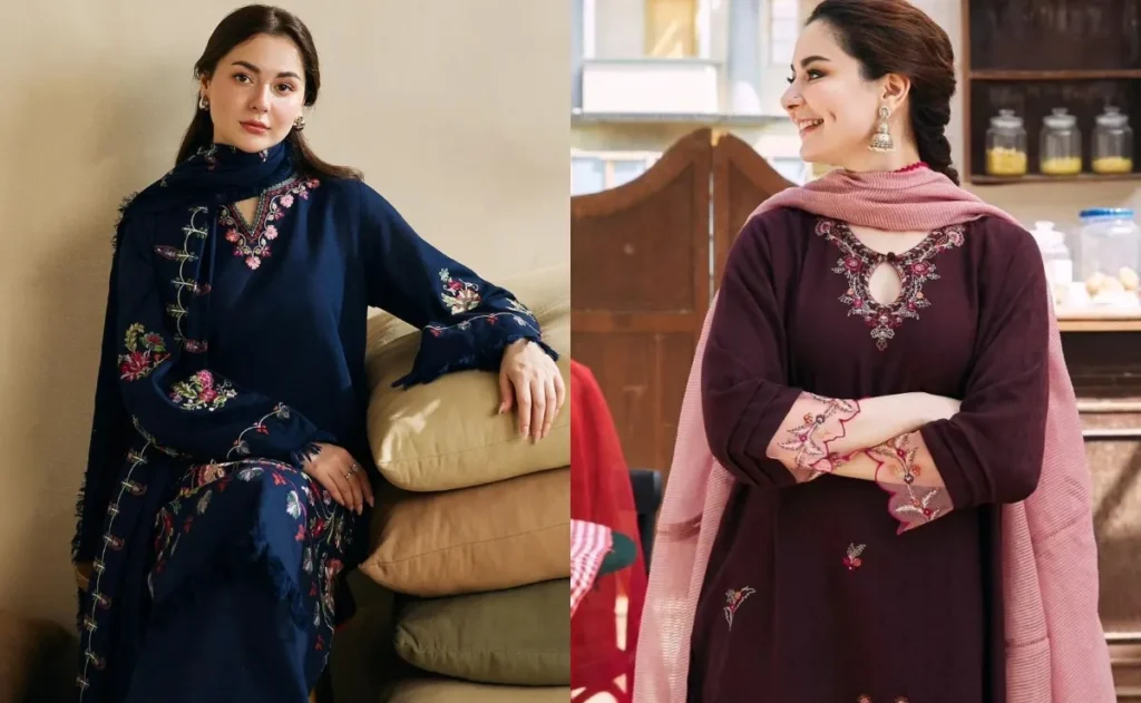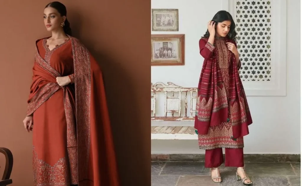 कश्मीरी प्रिंट्स कभी भी आउट ऑफ फैशन नहीं होते. कानी वर्क वाले वुलन कुर्ता सेट्स अपने वाइब्रेंट कलर्स और बारीक़ प्रिंट्स के लिए जाने जाते हैं. सर्दियों की धूप में ये कलर्स और खिलते हैं. साथ ही आपके लुक को एक ट्रेडिशनल टच भी देते हैं.