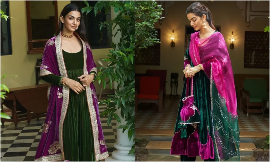 दीवाली, ईद या किसी भी त्योहार पर वेलवेट आउटफिट्स आपको भीड़ से अलग दिखाना है. इसका रिच टेक्सचर एथनिक जूलरी, स्टेटमेंट क्लच और बोल्ड मेकअप के साथ बहुत खूबसूरत लगता है. ज्वेल टोन से लेकर सॉफ्ट पेस्टल शेड्स तक, वेलवेट कुर्ता सेट हर मूड और स्टाइल में फिट बैठता है.
