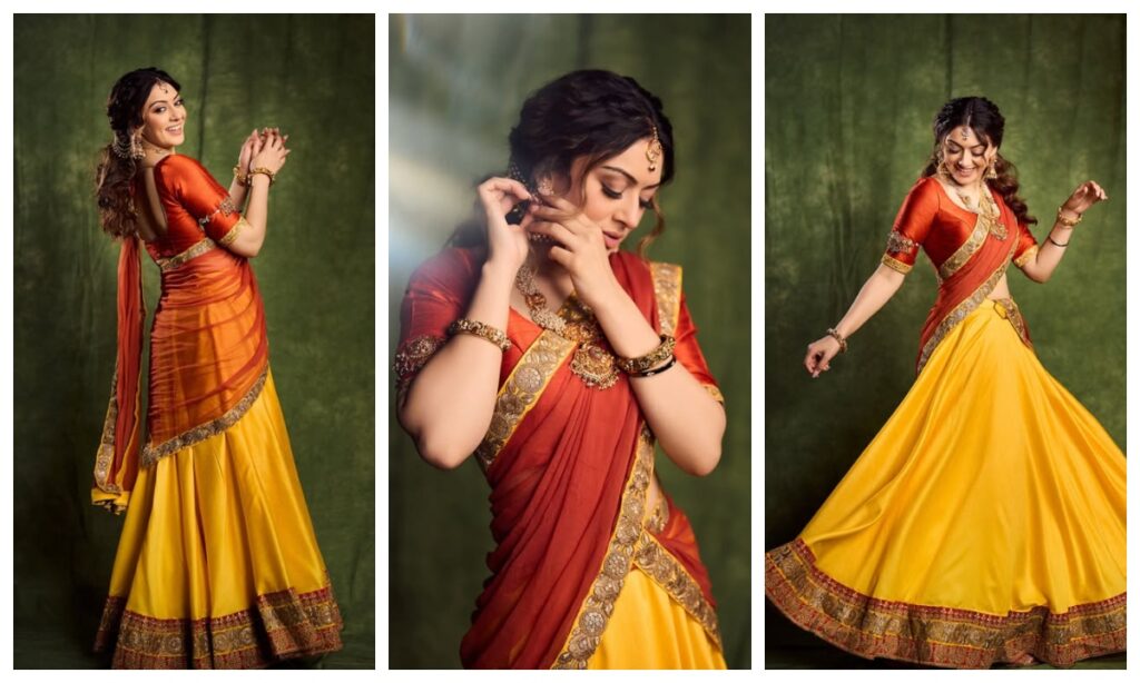 हंसिका मोटवानी की तरह आप वट सावित्री के दिन टोमेटो रेड औऱ येलो कलर का लहंगा भी पहन सकती हैं. उनका सिंपल ट्रेडिशनल लुक भी इस खास दिन के लिए बेस्ट रहेगा.