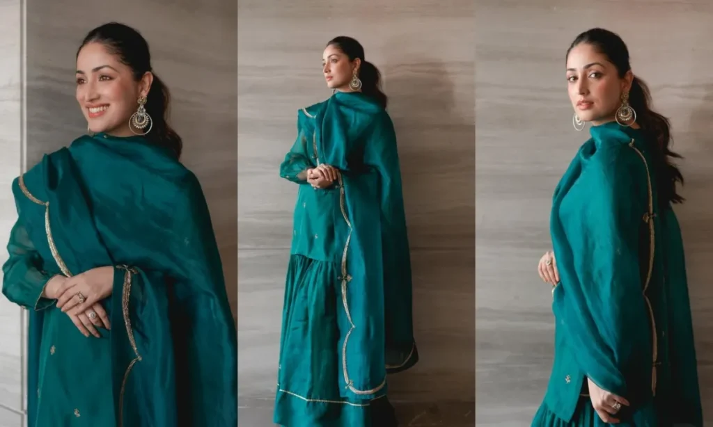रॉ मैंगो के डार्क टील कलर के सूट में यामी ने साबित किया कि कैसे बिना तामझाम वाले लुक में ग्रेसफुल लग सकते हैं. इस आउटफिट में लेयरिंग और सॉफ्ट स्ट्रक्चर था, जो इसे फेस्टिव और फॉर्मल दोनों मौकों के लिए परफेक्ट बनाता है. स्टेटमेंट इयररिंग्स और वॉर्म टोन्ड मेकअप के साथ, यामी ने अपने लुक को कम्पलीट किया.