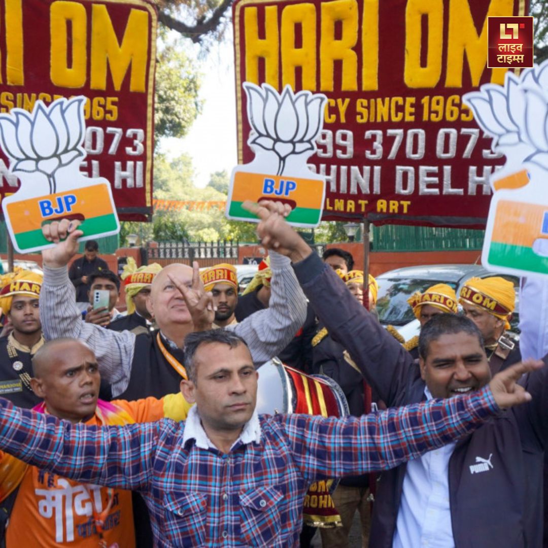 Delhi Assembly Election Result : BJP कार्यालय के बाहर जश्न शुरू, चुनाव आयोग के रुझानों में बहुमत तय!