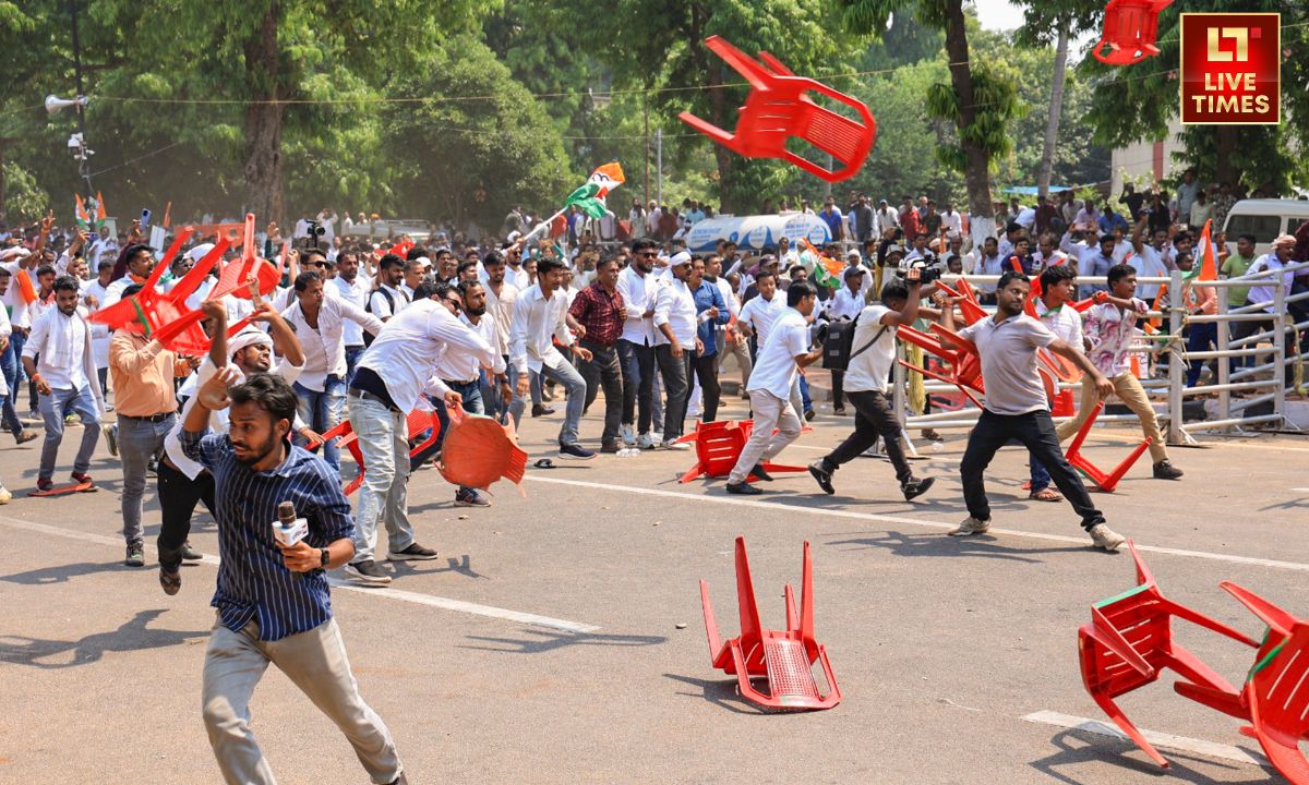 कांग्रेसियों ने सुरक्षाकर्मियों पर पत्थर, बोतलें और प्लास्टिक की ​​फेंकी कुर्सियांः पुलिस