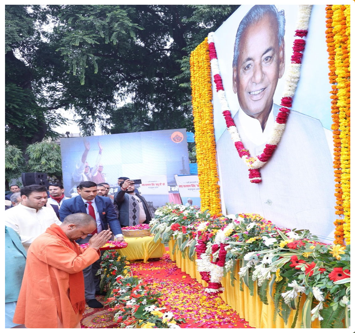 उत्तर प्रदेश के मुख्यमंत्री योगी आदित्यनाथ ने यूपी के पूर्व मुख्यमंत्री कल्याण सिंह की 92 वीं जयंती पर उन्हें श्रद्धांजलि दी। सीएम योगी ने कल्याण सिंह के चित्र पर माल्यार्पण किया। इस दौरान उप मुख्यमंत्री केशव प्रसाद मौर्य, ब्रजेश पाठक, मंत्री स्वतंत्र देव सिंह, संदीप सिंह और महापौर सुषमा खर्कवाल समेत अन्य नेता और कार्यकर्ता भी मौजूद रहे।