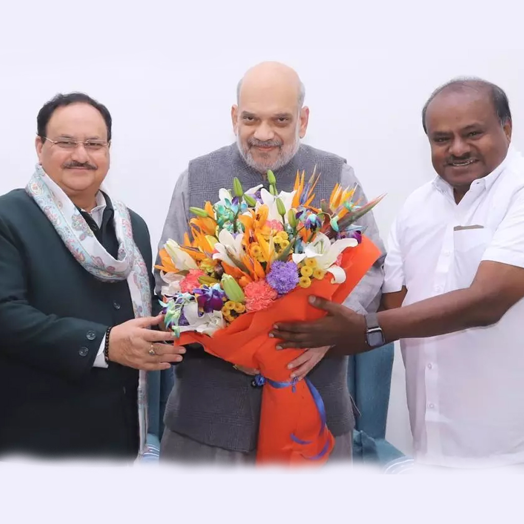 लोकसभा चुनाव नजदीक आते देख राजनीतिक हलकों में हलचल तेज हो गई है। कर्नाटक के पूर्व सीएम और जेडीएस के प्रदेश अध्यक्ष कुमारस्वामी ने दिल्ली में केंद्रीय गृहमंत्री अमित शाह और बीजेपी के राष्ट्रीय अध्यक्ष जेपी नड्डा से मुलाकात की। कुमारस्वामी की ये मुलाकात करीब एक घंटें तक चली। जिसमें राज्य की राजनीति और सीट बंटवारे समेत गठबंधन के मुद्दे पर बातचीत की गई।
