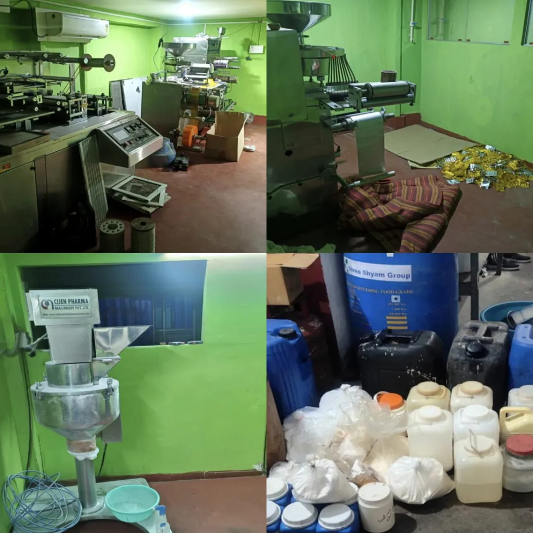 इस केस में पिछली गिरफ्तारियों से मिली टेक्निकल और ह्यूमन इंटेलिजेंस का इस्तेमाल करने के बाद, यह पता चला कि तनिष्क, जिसे पिछले हफ़्ते कई गिरफ्तारियों में गिरफ्तार किया गया था, उसने गया के अरुण नाम के एक व्यक्ति के साथ मिलकर काम किया था. अरुण बिहार के गया में एक नकली फैक्ट्री चलाता हुआ पाया गया, जिसके पास दवाइयां बनाने का लाइसेंस नहीं था. गया से ड्रग डिपार्टमेंट की टीम को बुलाया गया और फैक्ट्री बिना किसी वैलिड लाइसेंस के, जरूरी मैन्युफैक्चरिंग और एनालिटिकल केमिस्ट की गैर-मौजूदगी में चलाई जा रही थी. बड़ी मात्रा में इक्विपमेंट, नकली टैबलेट/वायल, पैकिंग मटीरियल इस तरह मिला- ज़िंक की 119800 नकली टैबलेट, एज़िथ्रोमाइसिन की 42,480 नकली टैबलेट, 27 Kgs पैरासिटामोल.