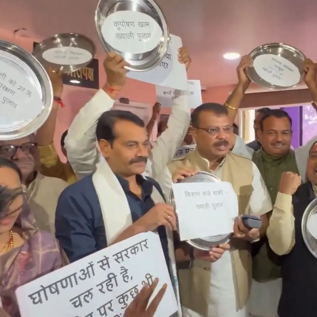 Madhya Pradesh : मध्य प्रदेश विधानसभा सत्र के चौथे दिन जमकर हंगामा मचा और इस कारण राजनीति का पारा बढ़ गया. कांग्रेस विधायकों ने सरकार के कथित झूठे और खोखले के खिलाफ विधानसभा परिसर में प्रदर्शन किया. साथ ही विपक्ष के नेता उमंग सिंघार के नेतृत्व में कांग्रेस विधायकों ने विधानसभा भवन के बाहर महात्मा गांधी की प्रतिमा के पास नारेबाजी की. इस दौरान विधायकों ने थालियां पकड़कर जमकर नारेबाजी की और सरकार पर बड़े-बड़े वादों के नाम पर जनता को ख्याली पुलाव परोसने का आरोप लगाया. सिंघार ने पत्रकारों से बातचीत में कहा कि राज्य में बीजेपी सरकार सिर्फ झूठे और खोखले वादों में चल रही है, जबकि जमीन पर स्थिति बिल्कुल अलग है.