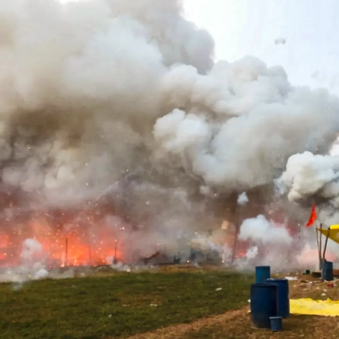 फतेहपुर के पटाखा बाजार में भीषण आगः 65 दुकानें जलकर राख, करोड़ों का नुकसान, धमाकों से दहला इलाका