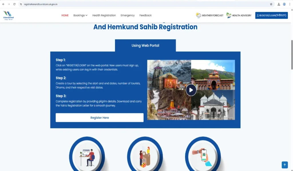 रजिस्ट्रेशन करने के लिए आपको registrationandtouristcare.uk.gov.in पर जाना होगा. होमपेज पर ‘Register Here’ पर क्लिक करें और आगे का प्रक्रिया पूरी करें. वही मोबाइल ऐप के जरिए भी ऑनलाइन पंजीकरण किया जा सकता है. इसके लिए Tourist Care Uttarakhand App डाउनलोड करें. भारतीय श्रद्धालू अपना पंजीकरण आधार कार्ड के माध्यम से कर सकेंगे. वहीं विदेशी श्रद्धालुओं के लिए ई-मेल आईडी की सुविधा उपलब्ध कराई गई है.