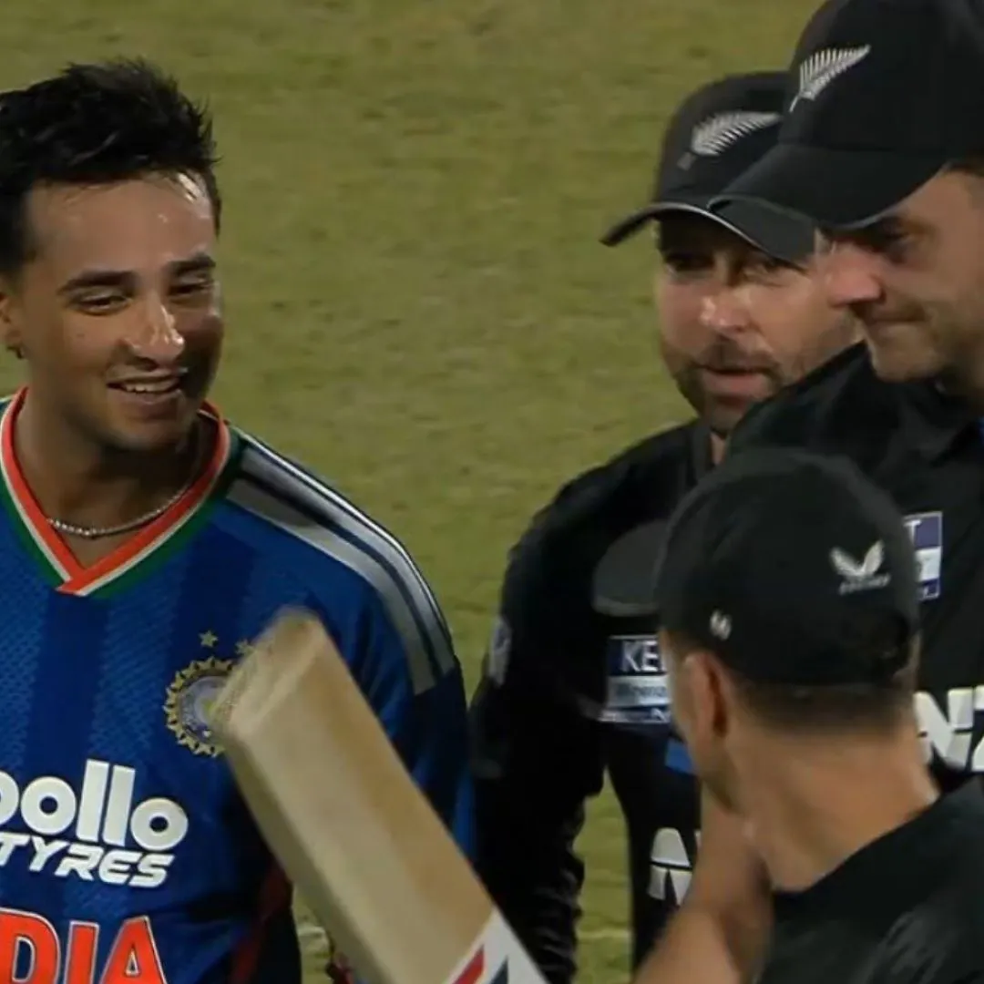 Abhishek Sharma Video Viral : भारत और न्यूजीलैंड के बीच गुवाहाटी में खेले गए सीरीज के तीसरे मुकाबले में अभिषेक शर्मा की बल्लेबाजी से कीवी चकित रह गए. उनकी बल्लेबाजी से मैदान पर हर कोई हैरान हो गया. उन्होंने 20 गेंदों में 68 रनों की तूफानी पारी खेली और मैच खत्म होने के बाद उनका एक वीडियो सोशल मीडिया पर जमकर वायरल हो रहा है. इस दौरान न्यूजीलैंड के कप्तान मिचेल सेंटनर, ओपनर डेवॉन कॉन्वे और तेज गेंदबाज जैकब डफी शर्मा का बल्ला देखकर मुस्करा रहे थे. ये वीडियो साल 2003 के क्रिकेट विश्व कप फाइनल में रिकी पोंटिंग के स्प्रिंग बैट की अफवाहों को तेज कर दिया.