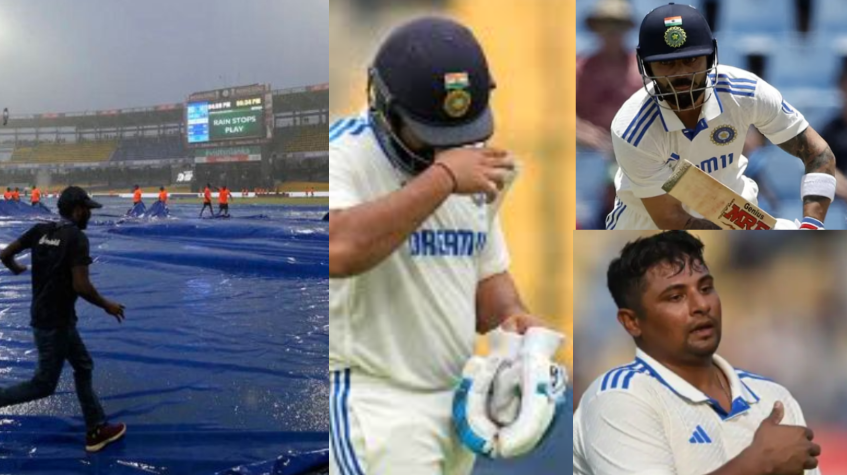 16 बॉल पर दो रन बनाकर कप्तान रोहित शर्मा आउट हुए. उसके बाद आये विराट कोहली 9 बॉल खेल कर एक भी रन नहीं बना पाए और विलियम ओरोर्के की बॉल का शिकार हो गए. और विराट कोहली के ठीक बाद सरफराज खान भी कैच आउट होकर बिना एक रन बनाये पवेलियन वापस लौट गए.