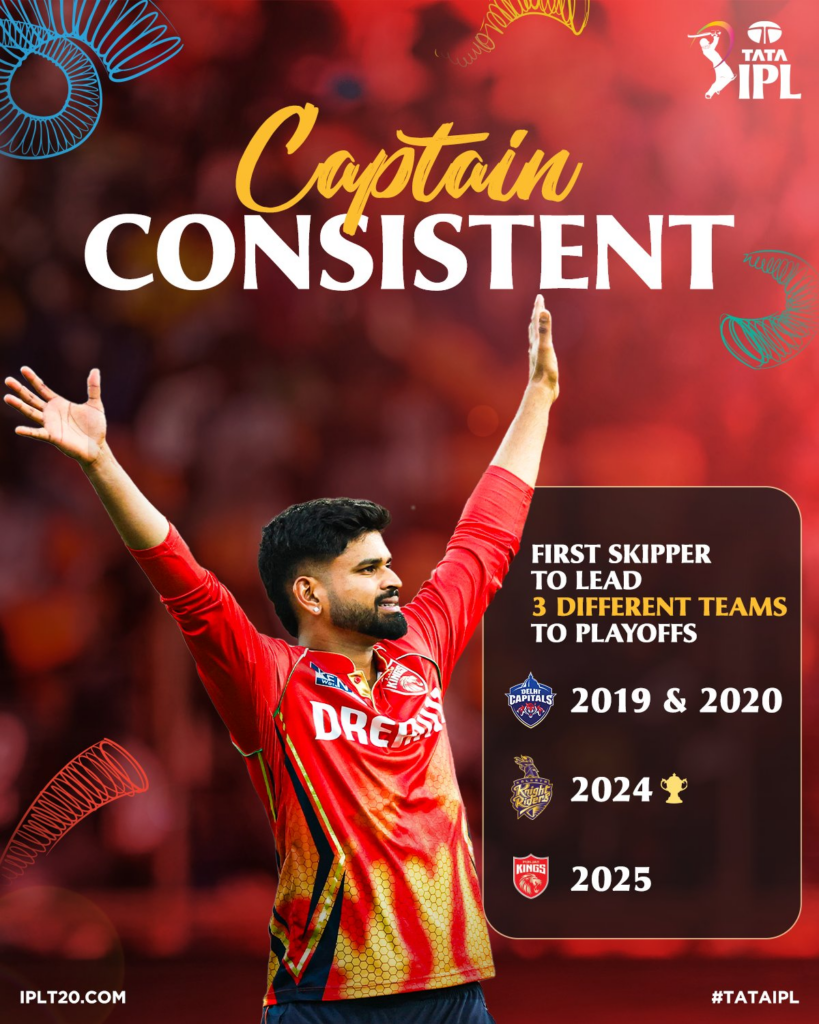 राजस्थान के खिलाफ नेहाल वढेरा और शशांक सिंह की तूफानी अंदाज में अर्धशतकीय पारियों के दम पंजाब ने 20 ओवर में 5 विकेट के नुकसान पर 2019 रन बोर्ड पर लगा दिए. इस दौरान नेहाल ने 70 रन और शशांक ने 59 रनों की ताबड़तोड़ पारी खेली. लक्ष्य का पीछे करने उतरी राजस्थान रॉयल्स 20 ओवर में 7 विकेट के नुकसान पर 209 रन ही बना सकी और 10 रनों से यह मुकाबला हार गई. इसके साथ ही पंजाब किंग्स की कप्तानी करते हुए श्रेयस अय्यर ने भी कमाल कर दिया. वह एक मात्र ऐसे कप्तान बन गए जिन्होंने तीन अलग-अलग टीमों की कप्तानी करते हुए तीनों को प्लेऑफ में पहुंचाने का काम किया. साल 2019 और 2020 में उन्होंने दिल्ली कैपिटल्स और कोलकाता नाइट राइडर्स की कप्तानी की थी.