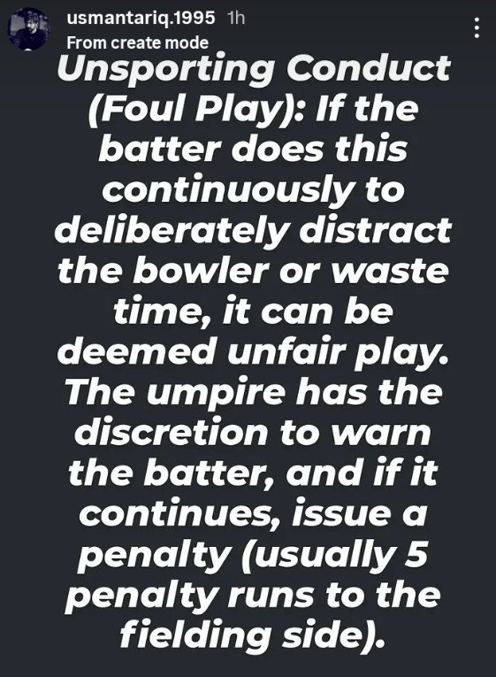 मिचेल की तरफ से बार-बार गेंद नहीं खेले जाने को लेकर उस्मान तारिक ने कहा कि यह गेंदबाज को भटकाने के लिए किया गया है. साथ ही अंपायर के पास बल्लेबाज को चेतावनी देने का अधिकार है और अगर वह ऐसा करना जारी रखते हैं तो अंपायर के पास इतनी ताकत है कि वह पेनल्टी लगा सकता है. साथ ही पेनल्टी के रूप में फील्डिंग टीम को 5 रन अतिरिक्त दिए जाते हैं. बता दें कि उस्मान का एक्शन भले ही नियमों के अनुसार वैध है लेकिन इसके बाद भी उनका एक्शन बल्लेबाज की एकाग्रता को भंग करने वाला बताया जाता है. साथ ही तारिक जब अपने हाथ से गेंद को रिलीज करने वाले होते हैं तो वह रुक जाते हैं, जिसके कारण बल्लेबाज को काफी दिक्कतों का सामना करना पड़ जाता है.