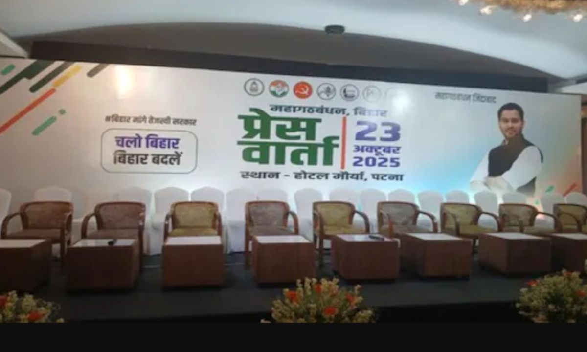Bihar Election 2025 : बिहार चुनाव की तारीखों के एलान के साथ ही राजनीतिक दलों ने चुनावी अभियान शुरू कर दिया है. आरोप-प्रत्यारोप के साथ विवाद होने भी शुरू हो गया है. सबसे पहले महागठबंधन में सीट बंटवारे को लेकर देरी के दौरान कई असहमतियां सामने आ रही थी और अब एक पोस्टर को लेकर विवाद थमता नजर नहीं आ रहा है. पटना में गुरुवार को महागठबंधन की सामूहिक संयुक्त प्रेस कॉन्फ्रेंस के आयोजन स्थल पर लगे एक बैनर से I.N.D.I.A. ब्लॉक के शीर्ष नेताओं की तस्वीरें गायब थी, जिसको ध्यान में रखते हुए सोशल मीडिया पर विवाद शुरू हो गया है और बैनर की तस्वीर सोशल मीडिया पर जमकर वायरल हो रही है. इस बैनर में RJD नेता तेजस्वी यादव की तस्वीर लगी है.